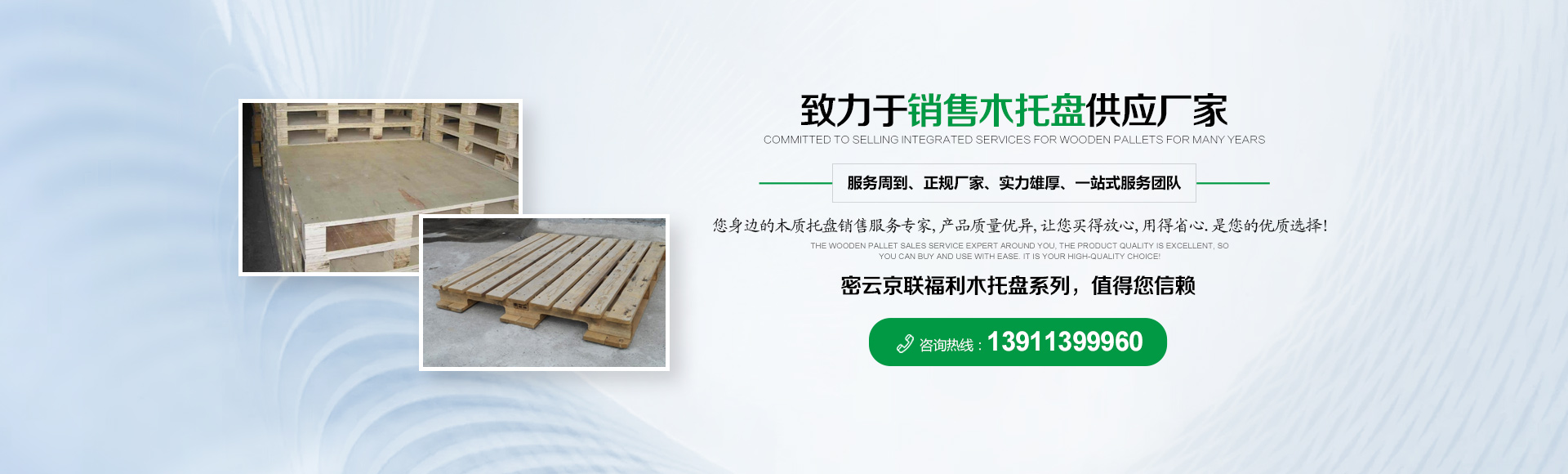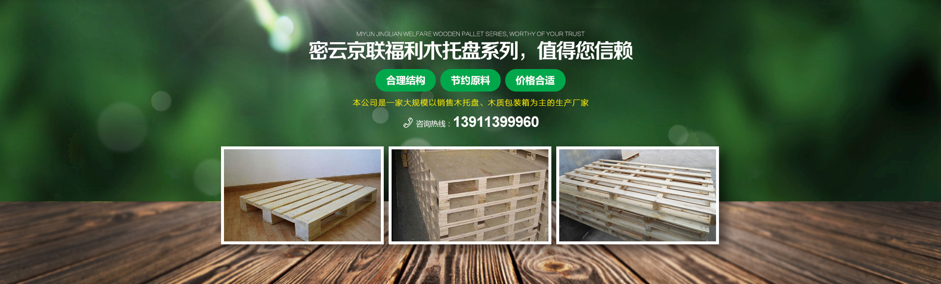 北京京聯(lián)國順木制品有限公司 (原北京市密云縣京聯(lián)福利木制品廠)成立于1993年,位于北京市密云縣西田各莊鎮(zhèn)蒼頭村,占地約5000平米。我公司工廠是一家大規(guī)模以銷售木托盤為主的生產(chǎn)廠家。本工廠是一家直接采購原木,按客戶要求生產(chǎn)規(guī)格尺寸的托盤,我公司工廠位于河北省承德市有著木材加工點,可以做到,從山上的木頭下山到客戶手中的托盤都是一手貨,減少了中間商的費用,所以我公司售出的產(chǎn)品對北京這個龐大的市場來說在同樣的規(guī)格尺寸的托盤來說價格比較占優(yōu)勢。